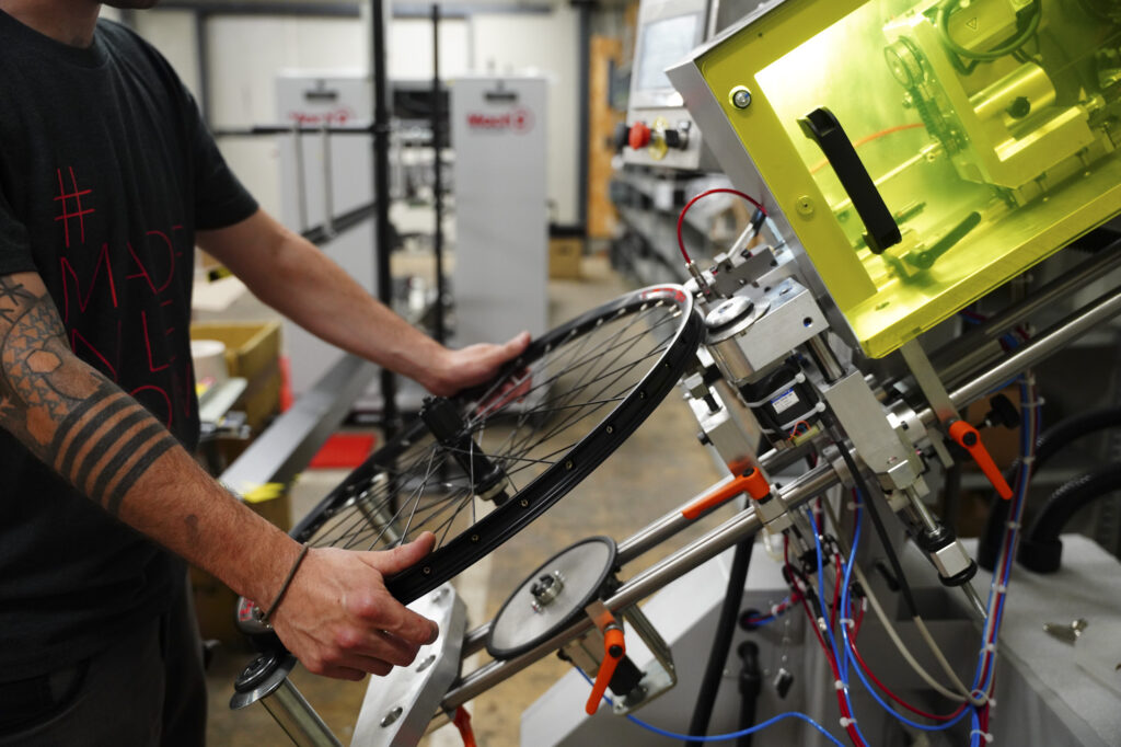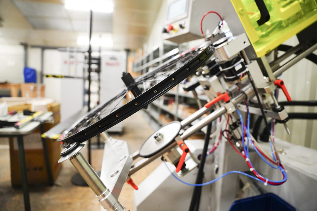 For this order, we used our BikeBotix wheel-building machine. At Milc, this work is carried out by Julie Maucourt, who is responsible for assembly and logistics.