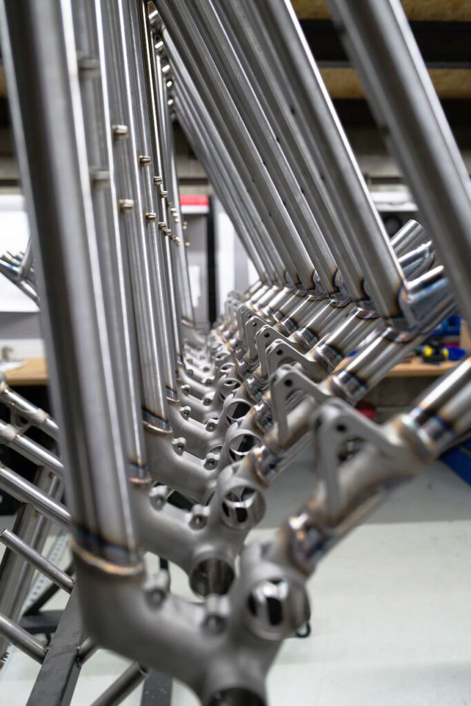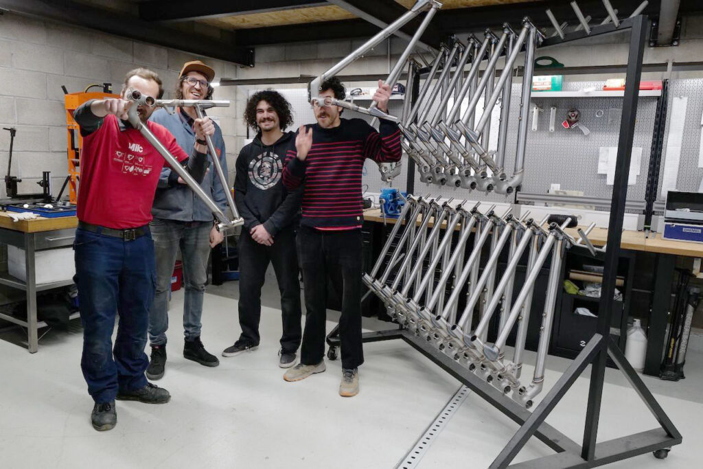 Une partie de la team Milc est venue leur prêter main forte dans la production des cadres de leur nouveau VTT, le Shan 6. Un vélo fabriqué à partir de tubes en acier de haute qualité, soudés dans leur atelier.